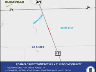 The Indiana Department of Transportation announces a road closure that will impact U.S. 421 in Boone County. Beginning on or after Friday, August 15, crews will be replacing a small structure over McCoy Ditch on […]