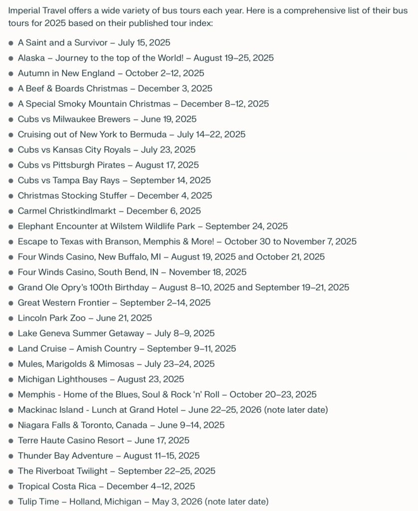 In the meantime, pack your bags if you are interested in any of the bus tours Imperial Travel is ready tell you about.
