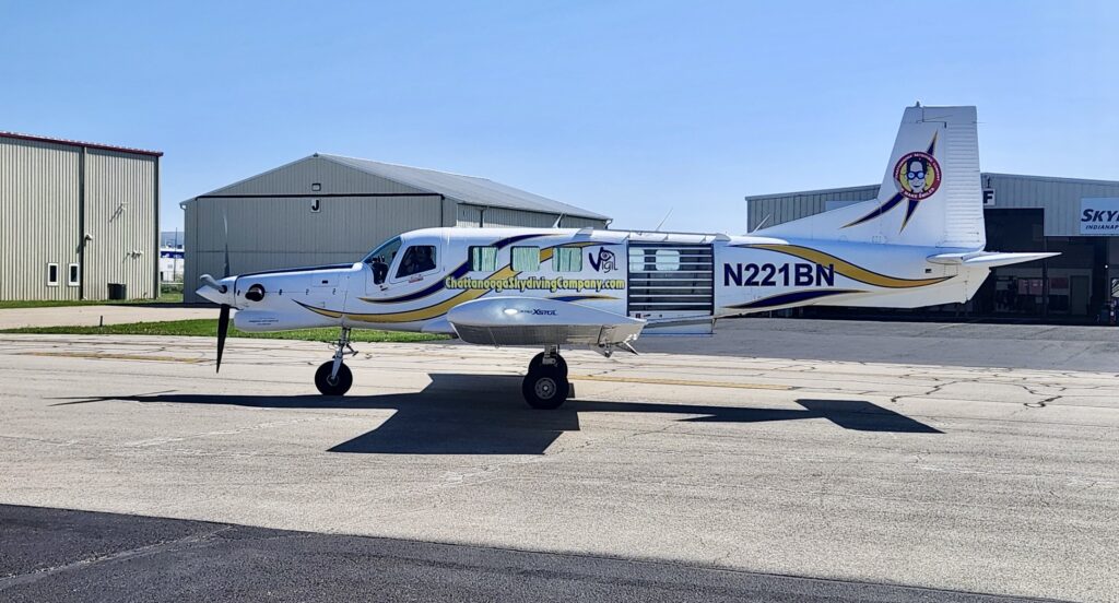 The SkyDive Indianapolis hangar buzzed with activity as jumpers geared up and staff prepared for a fun day of flights. The operation’s jump aircraft, N221BN, bearing the markings of the Chattanooga Skydiving Company network, could be seen on the ramp, ready to carry thrill-seekers to altitude above the Clinton County landscape.