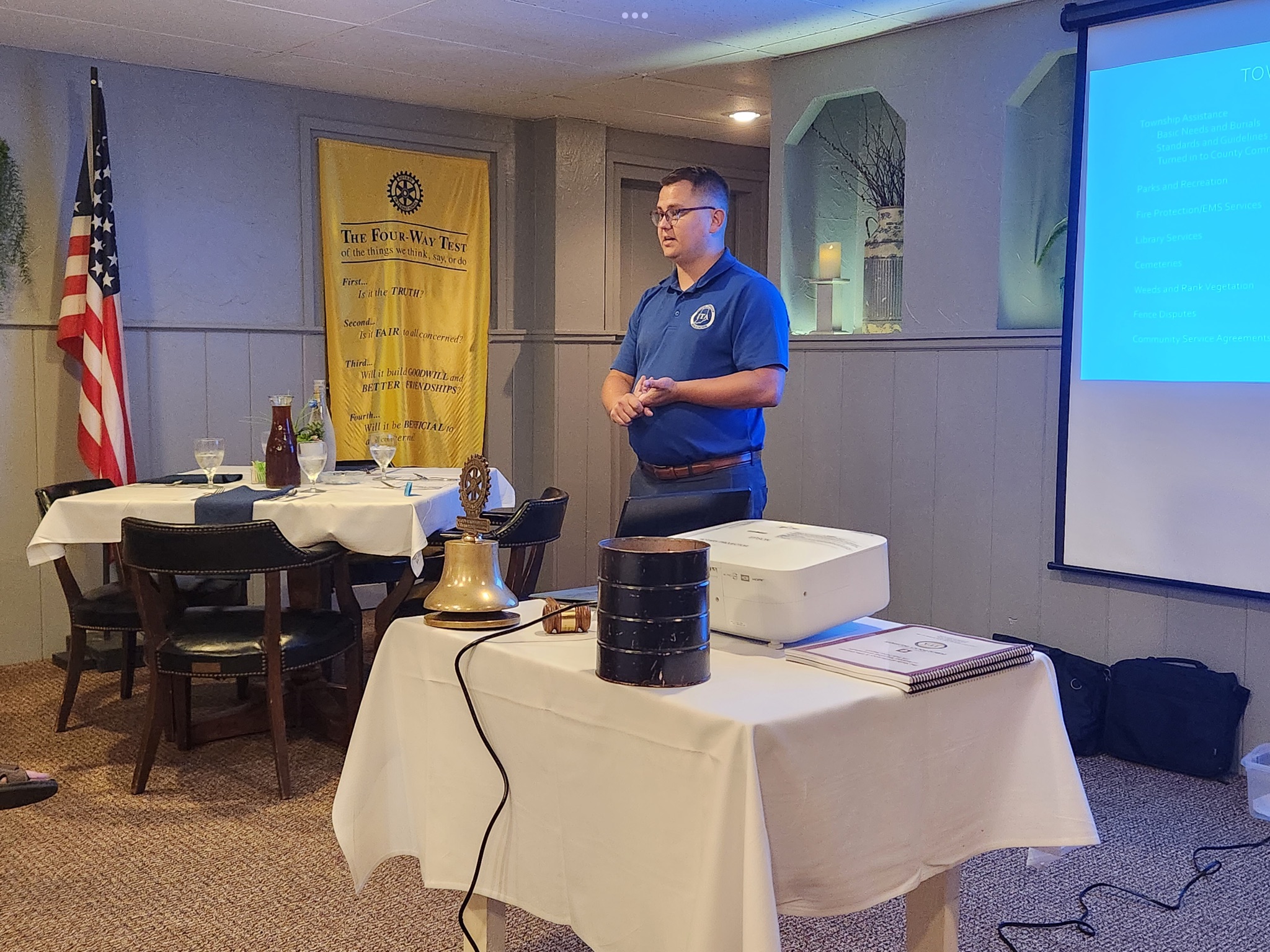 B09CCB90-9F4A-4BC4-A025-E6B6AACB495F Kevin Evans spoke at the Frankfort Rotary Thursday August 24th. Evans is Associate Director of he Indiana Township Association and Union Township Trustee