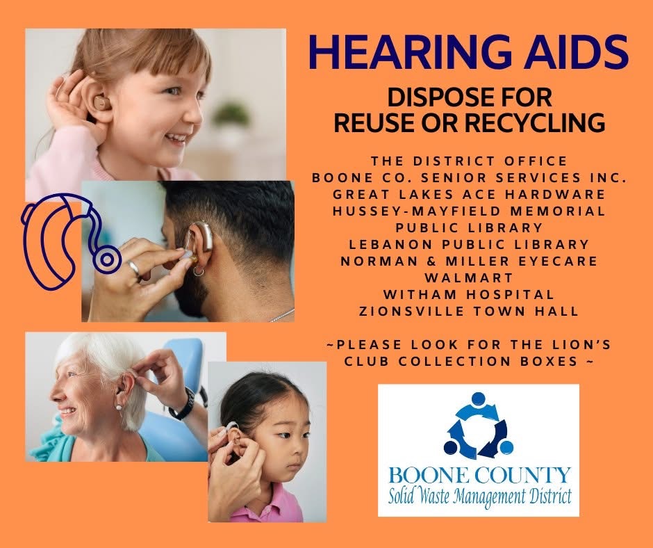 The Boone County Solid Waste Management District released further information regarding household items that may be recycled with a direct focus on hearing aids that may be disposed for reuse or recycling rather than thrown away.