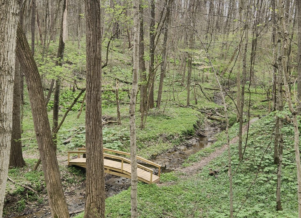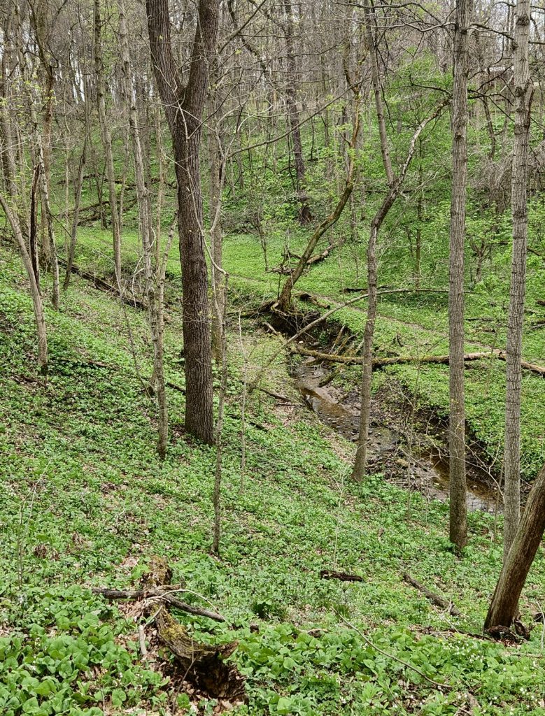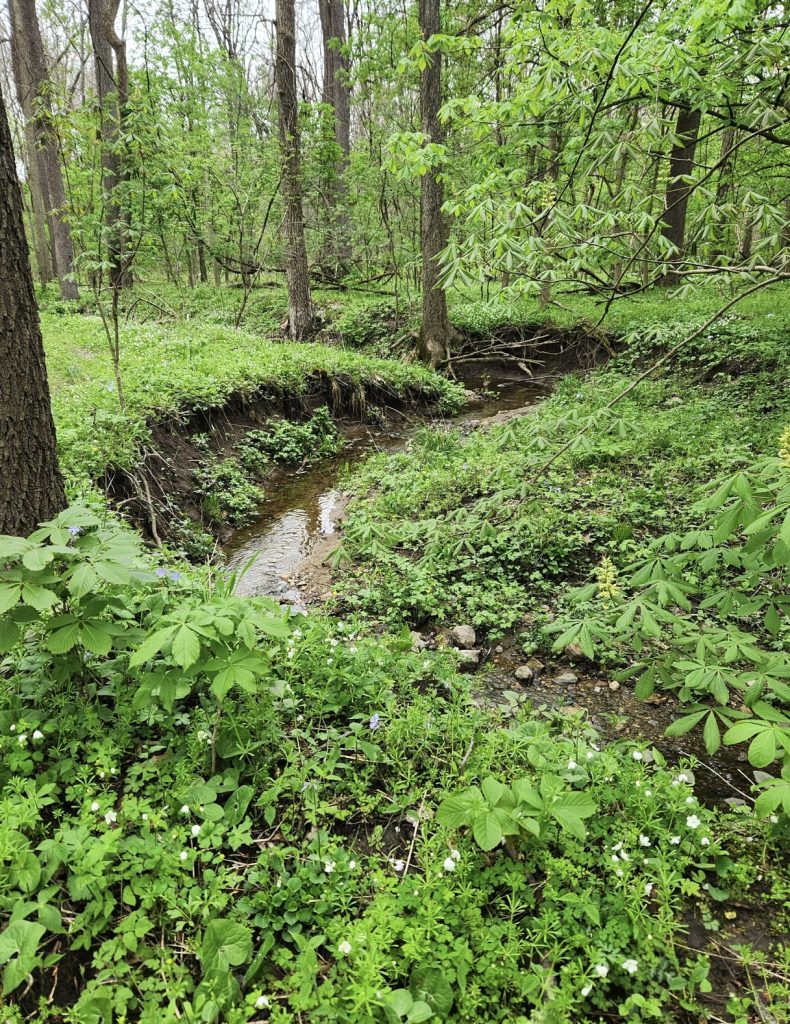 Wandering streams charm a trek through forest at Camp Cullom. This stream is also a feature and hazard on the intense disc golf course available at the Camp.