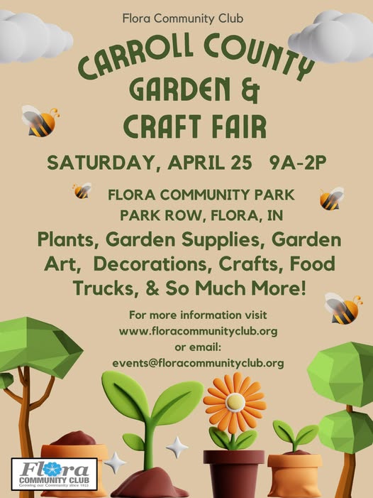 Springtime will be in full bloom in Carroll County as the Flora Community Club hosts the Carroll County Garden & Craft Fair on Saturday, April 25, at Flora Community Park.