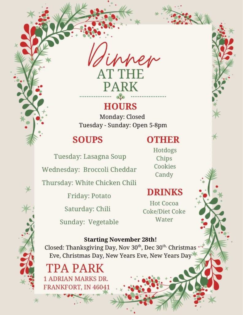 Tonight at TPA Park, the community’s top-voted dish, Lasagna Soup, will be served as the evening’s special. The rich, hearty meal is sure to be a hit, and guests are encouraged to stop by, enjoy, and share their thoughts.