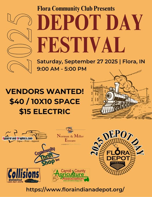 The Flora Depot Railroad and Local History Museum is gearing up for one of the community’s most beloved traditions—the Depot Day Festival, returning to Downtown Flora on Saturday, September 27, 2025.