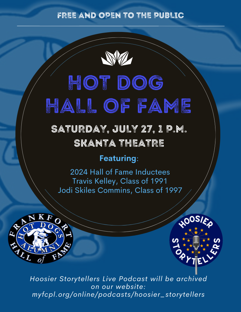 The Frankfort Community Public Library will host its next iteration of Hoosier Storytellers with special appearances from two inductees of the 2024 Frankfort Hot Dog Hall of Fame class tomorrow.