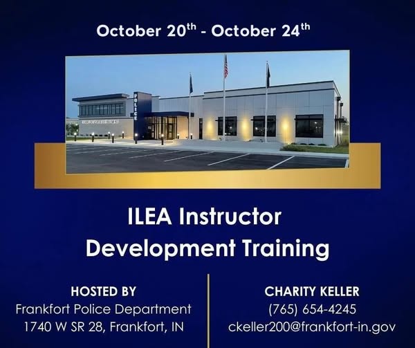 The Frankfort Police Department is proud to host the upcoming ILEA Instructor Development Course right here at our training facility. We are excited to welcome law enforcement professionals who are seeking instructor-level training opportunities.