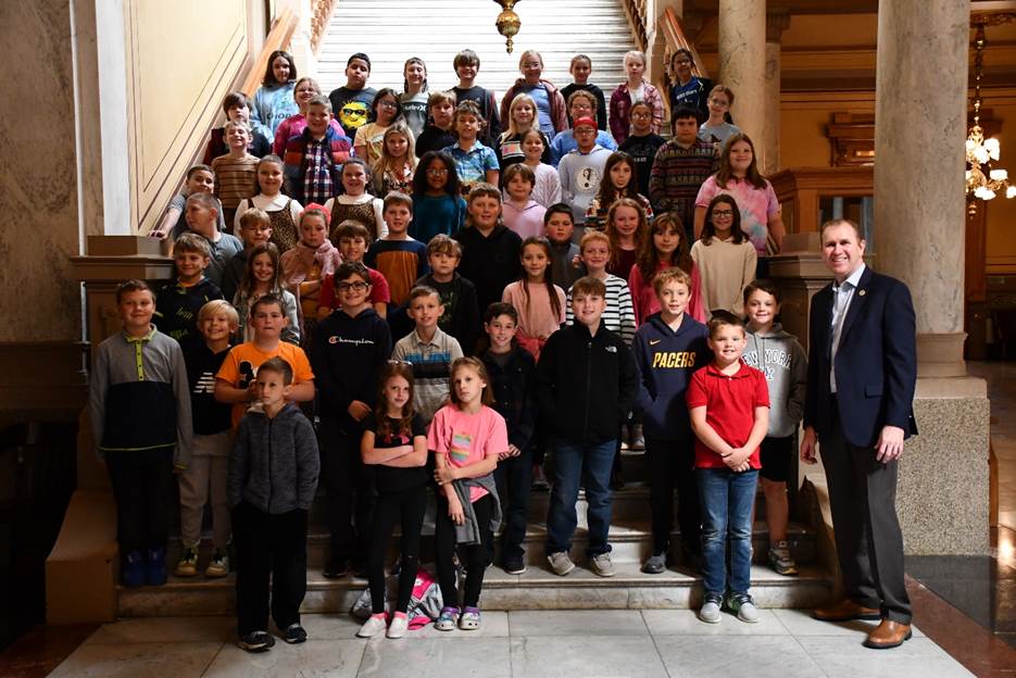 Thorntown students visiting Indiana State Senator Brian Buchanan, right.