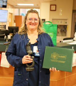 “Angie’s colleagues were not surprised to see her receive the Daisy Award. She consistently listens with empathy and cares deeply for both her patients and her teammates,” said Director of Patient Experience Rebecca Bradley. “We are so proud to recognize Angie for the extraordinary difference she makes every day.”