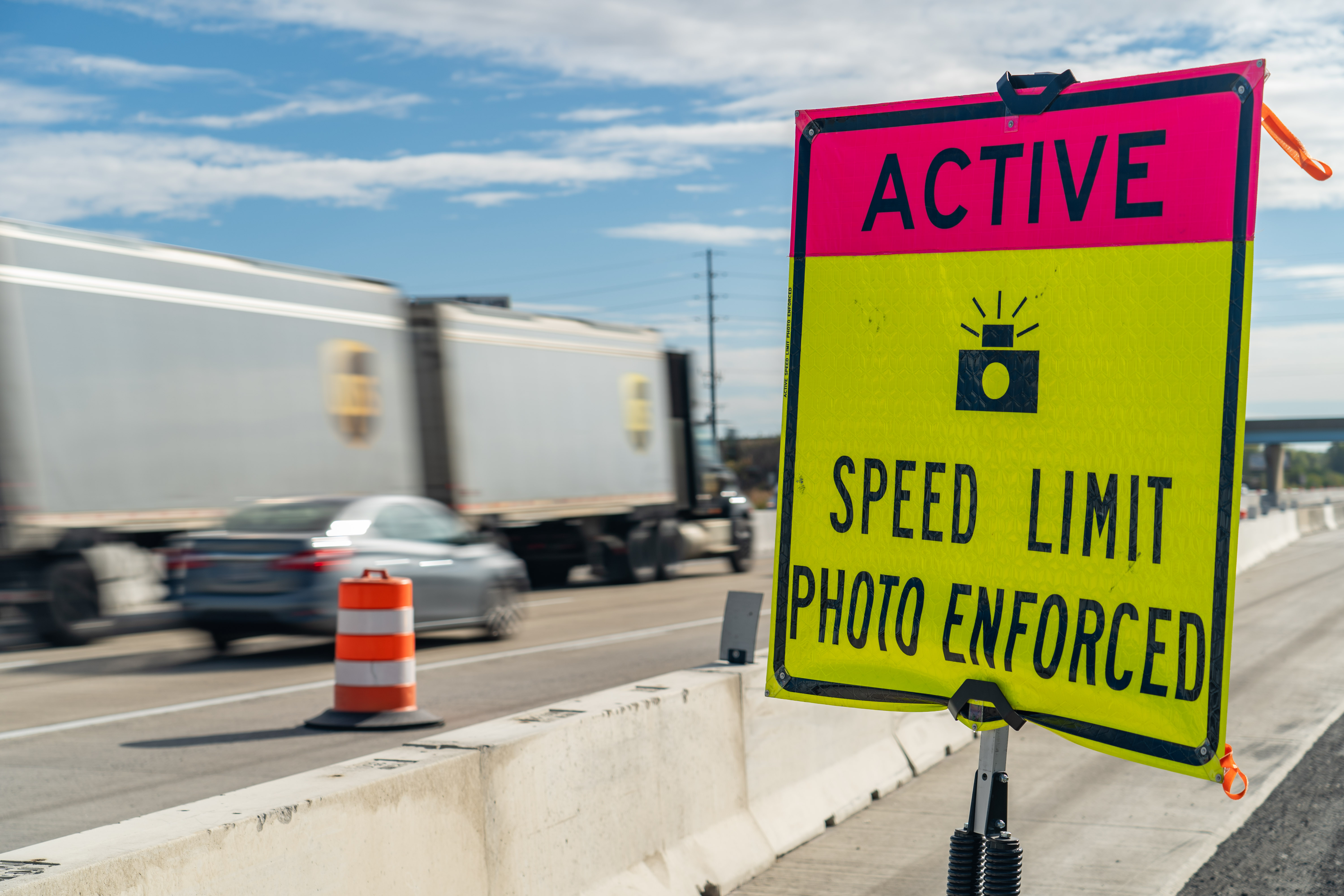 The system documents vehicle speeds using truck-mounted speed timing devices as drivers pass through work zones. When a vehicle is traveling 11 mph or more than the posted speed limit, the system captures an image of the vehicle’s rear license plate. After data is validated, violations are certified and issued to the owner of the vehicle by mail. In accordance with state statute, collected fines go into the state’s General Fund.